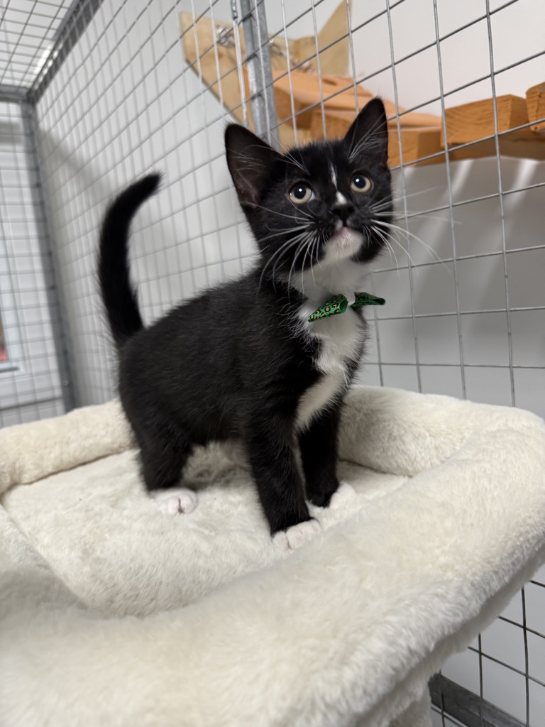 Muffin is a confident little explorer with a soft side - he's never shy about letting you know when it's time for a cuddle, often with a sweet meow and a purr that kicks in the second he's in your arms. This curious kitten is always on the move, whether he's climbing to new heights, sneaking into cupboards, or turning everyday objects into his personal playground.