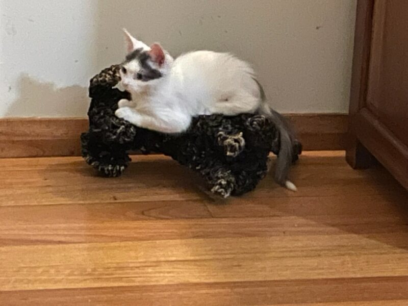 This pet has been adopted and found love with its new family.