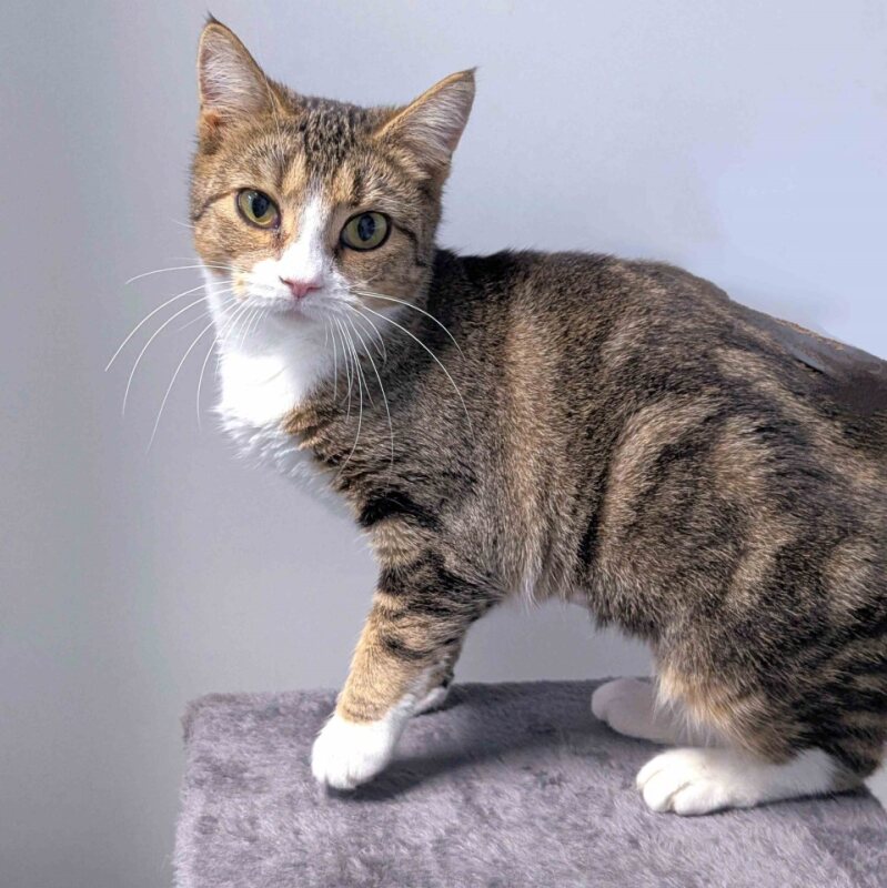 Hi there! My name is Lasagna, because I'm just as cozy and warm as your favorite comfort food. I'm a 2-year-old Domestic Short Hair kitten with a heart as big as my playful spirit. I'm a girl who knows how to balance my energy - I love playing and exploring, but I also love curling up for a good nap. Speaking of play, I'm pretty easygoing. I don't need anything fancy to have a good time. I'm all about the simple joys in life and I can find fun in just about anything. Give me a toy mouse or a ball of yarn, and I'm set for hours. Don't let my independence fool you though. I'm all about the love. I enjoy being around my humans and would love to be your new best friend. And don't worry about having kids around. I have no known issues with children, and I'm sure we'll all get along just fine. So, are you ready to add a little Lasagna to your life? I promise, I'll be the best dish you've ever had!