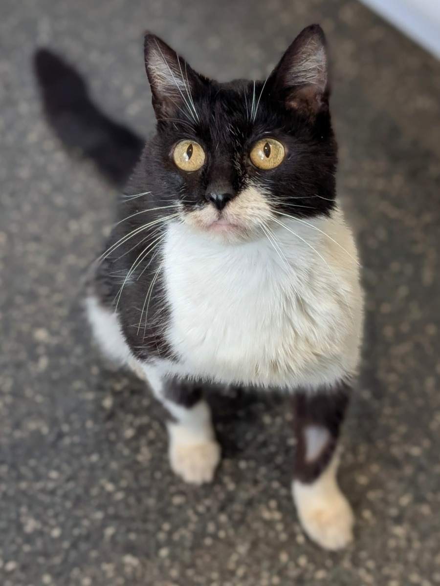 Despite her laid-back demeanor, Sadie possesses a vibrant personality that brings joy and tranquility to any home. She is the kind of cat who will gladly accompany you through life’s ups and downs. Whether perched at the window soaking in the sights or curled up next to you during a leisurely afternoon, Sadie knows how to make every moment feel special.