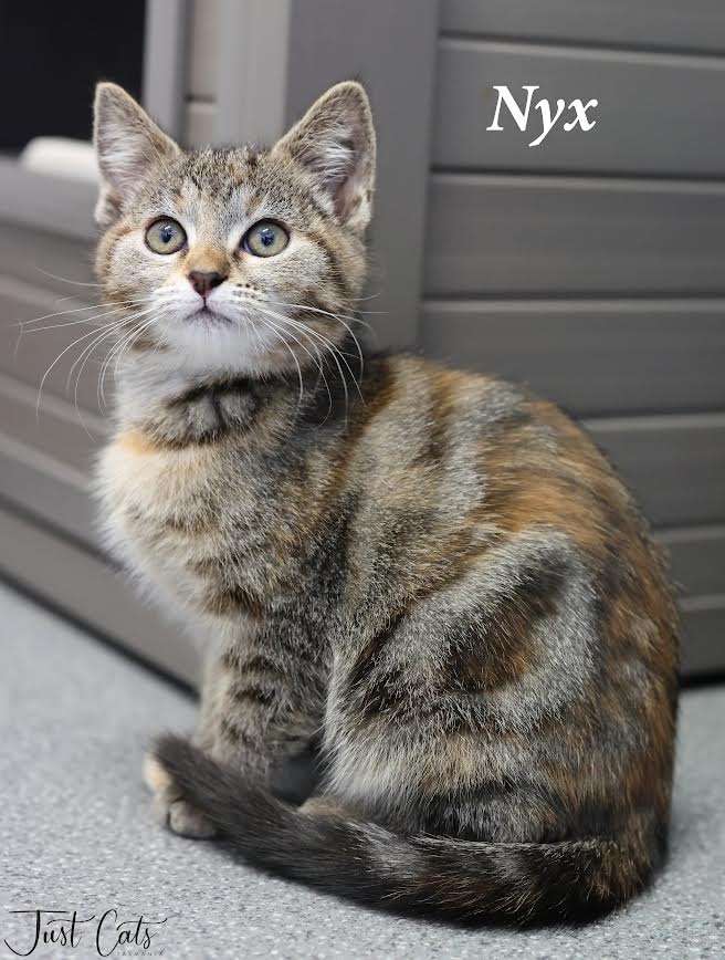 Nyx is a playful and mysterious little kitten with a torbie coat that gleams under the light. Nyx loves playing hide-and-seek and can often be found pouncing on her favorite toys, her eyes twinkling with excitement. But when playtime is over, she’s all about cuddles and affection, curling up beside you and gently nuzzling you with her soft little nose. Nyx might be a bit of an enigma, but she’s a sweet soul who will always keep you on your toes. She is good with other cats, untested around dogs and kids but with a slow introduction should do well. Come and meet her at our Burnie Centre.