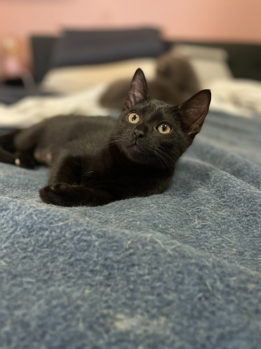 Meet Benji, the gorgeous, sleek mini panther with a soft spot for those lazy afternoons. Her inky black coat and graceful demeanor make her a striking presence, but it's her tender heart that truly captivates. Although she enjoys a playful moment with her toys, Benji's favorite pastime is curling up by your legs or alongside her feline friends for a cozy snooze.