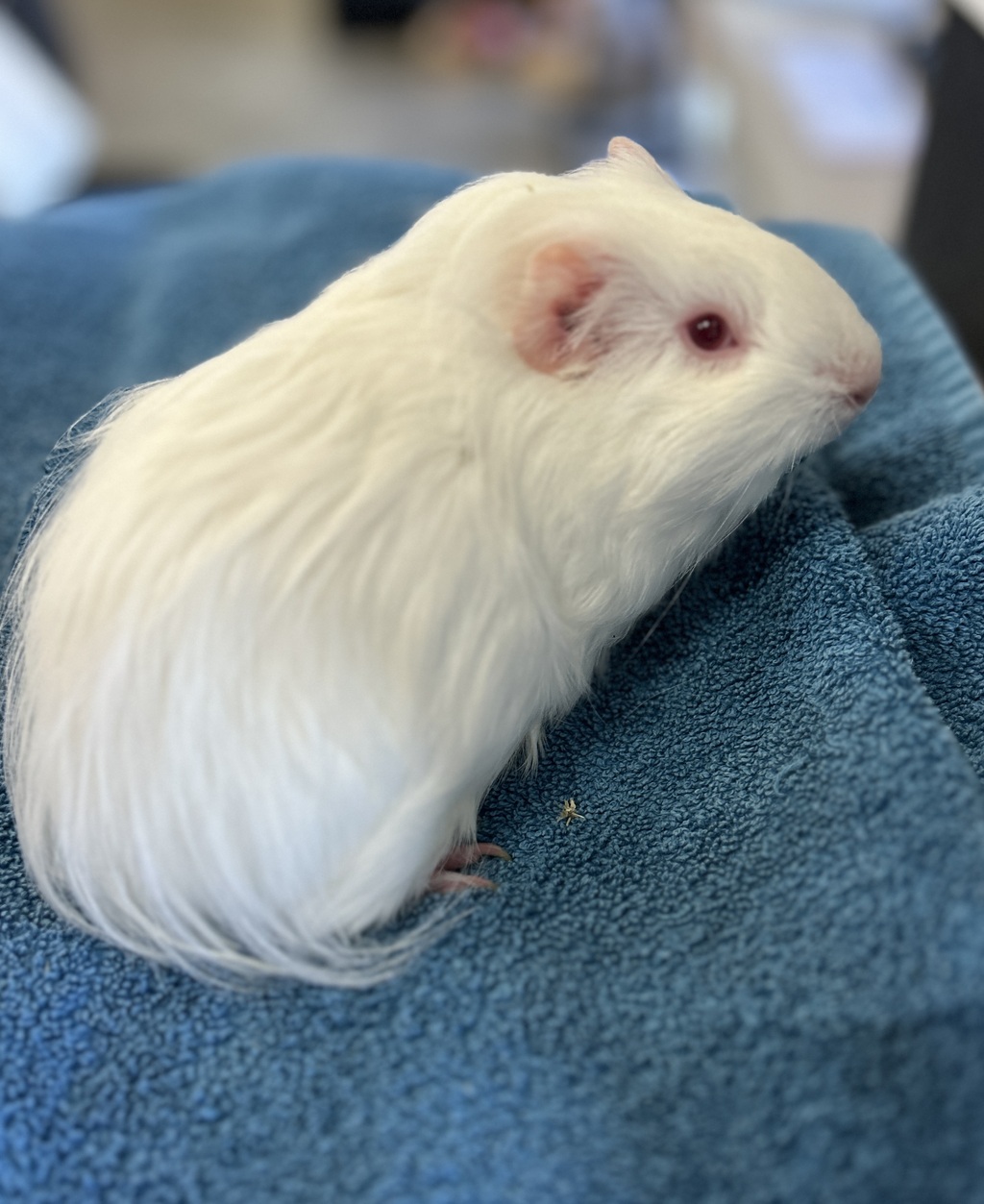 Spirit is a soft and sweet guinea pig with a calm, thoughtful personality. She's a little shy at first, but once she feels safe, she enjoys quiet companionship, gentle pets, and tasty veggie treats. Spirit finds comfort and confidence in her best friend, Rhino, who's always nearby to help her feel secure.