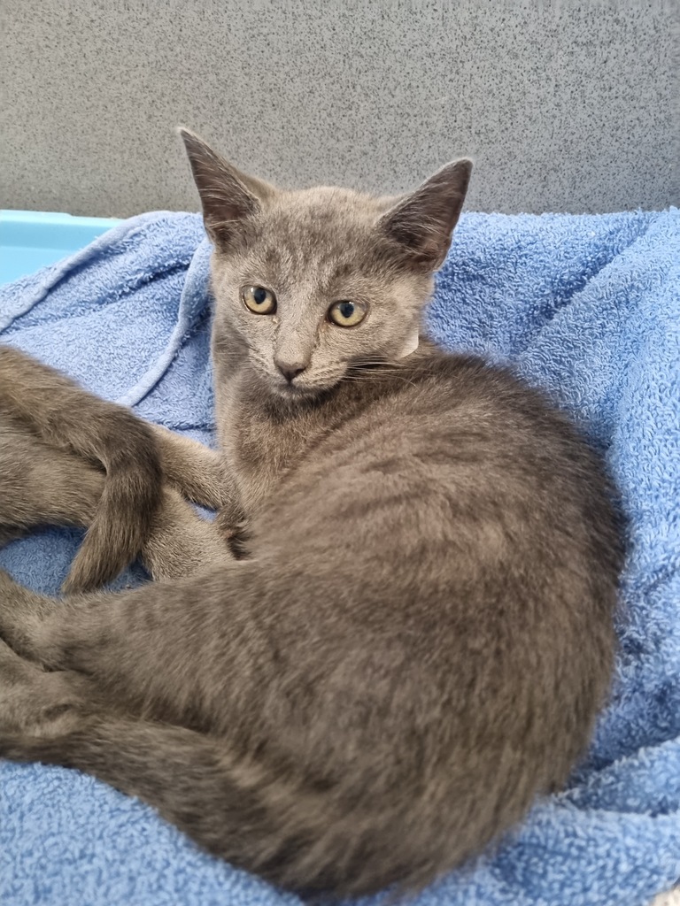 This playful kitten is also wonderfully cat social, often found hanging out with his feline friends or joining in on a group nap. He's open to any loving home where he can explore, play, and be his charming self.