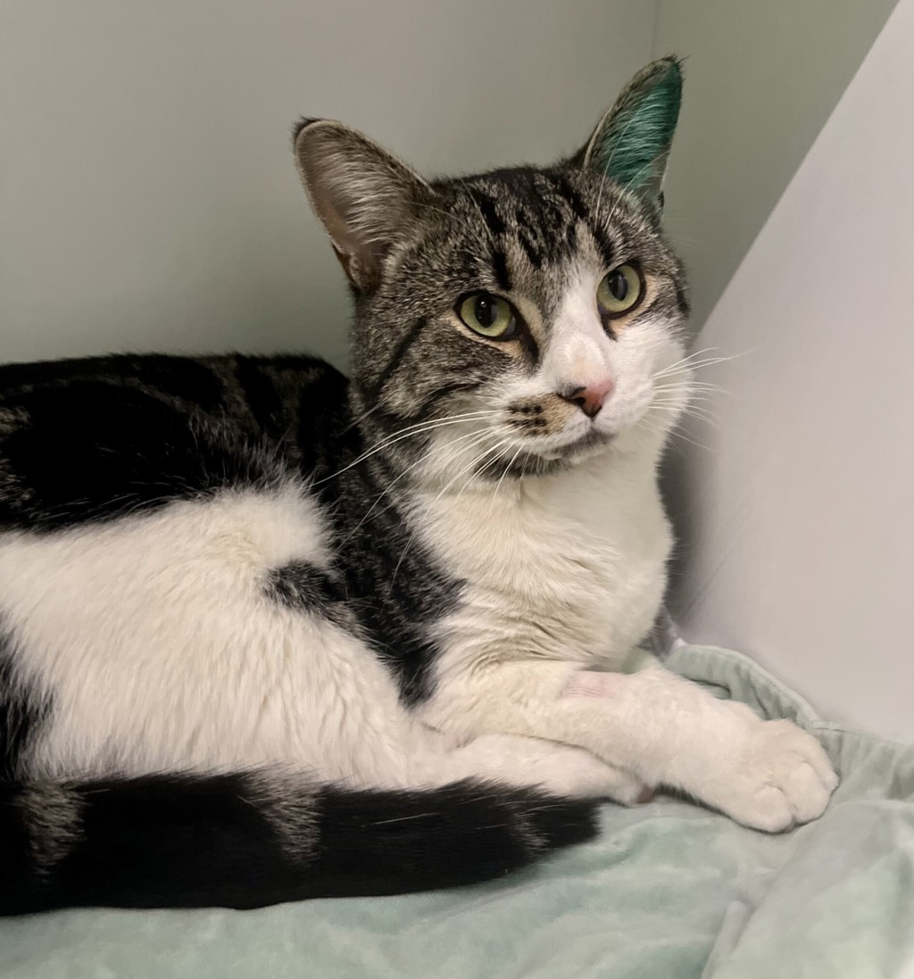 Meet Monsieur, a charming young gentleman with a personality that's simply irresistible. Whether he's playfully batting at toys or curling up in a sunny spot, he's always the picture of refined feline fun. Monsieur cannot go to a home with another cat.