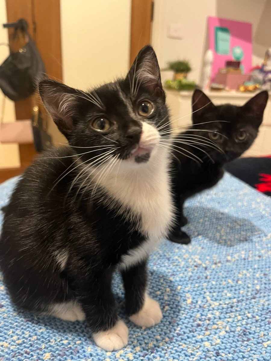 Meet Amber, a petite powerhouse with a big personality! This black and white bundle of mischief and love keeps everyone on their toes. She's always the first to test her climbing limits and the bravest when it comes to exploring new places—a true little trailblazer with a cheeky sparkle in her eye.