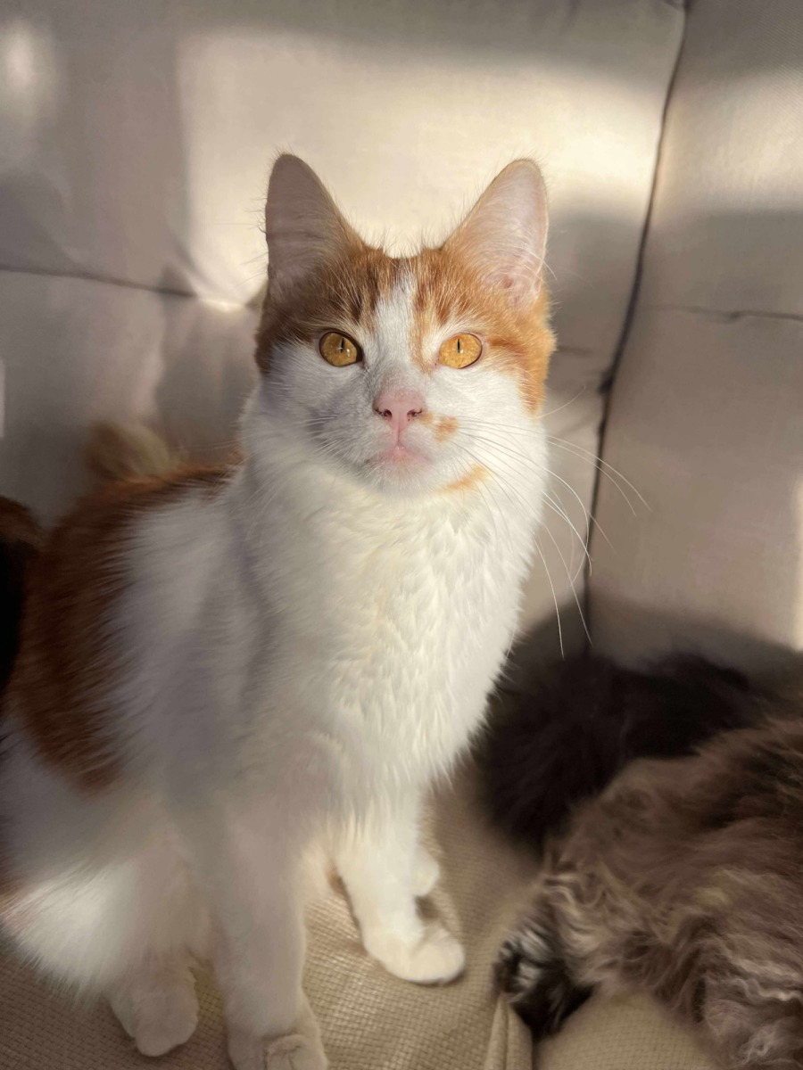 This cheeky little nugget is full of surprises! he’s not just a handsome face, but he’s also got personality to spare! Alfredo enjoys meowing at his foster carers and annoying his foster siblings. All jokes aside he’s a really lovable cat, he loves rolling around in the floor for pets and cuddling up with his siblings.