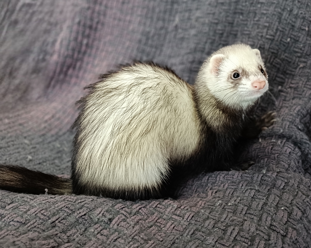 Meet Geranium, our gorgeous female ferret with a heart full of love and an inquisitive spirit! With her stunning coat and adorable features, she'll capture your heart at first glance. Geranium has a lovely nature that makes her a joy to have around. Her quiet personality allows her to be a calm companion, perfect for those who appreciate a gentle presence in their home. She's fully litter trained, making her the ideal addition to any household looking for a low-maintenance pet that still brings joy and laughter.