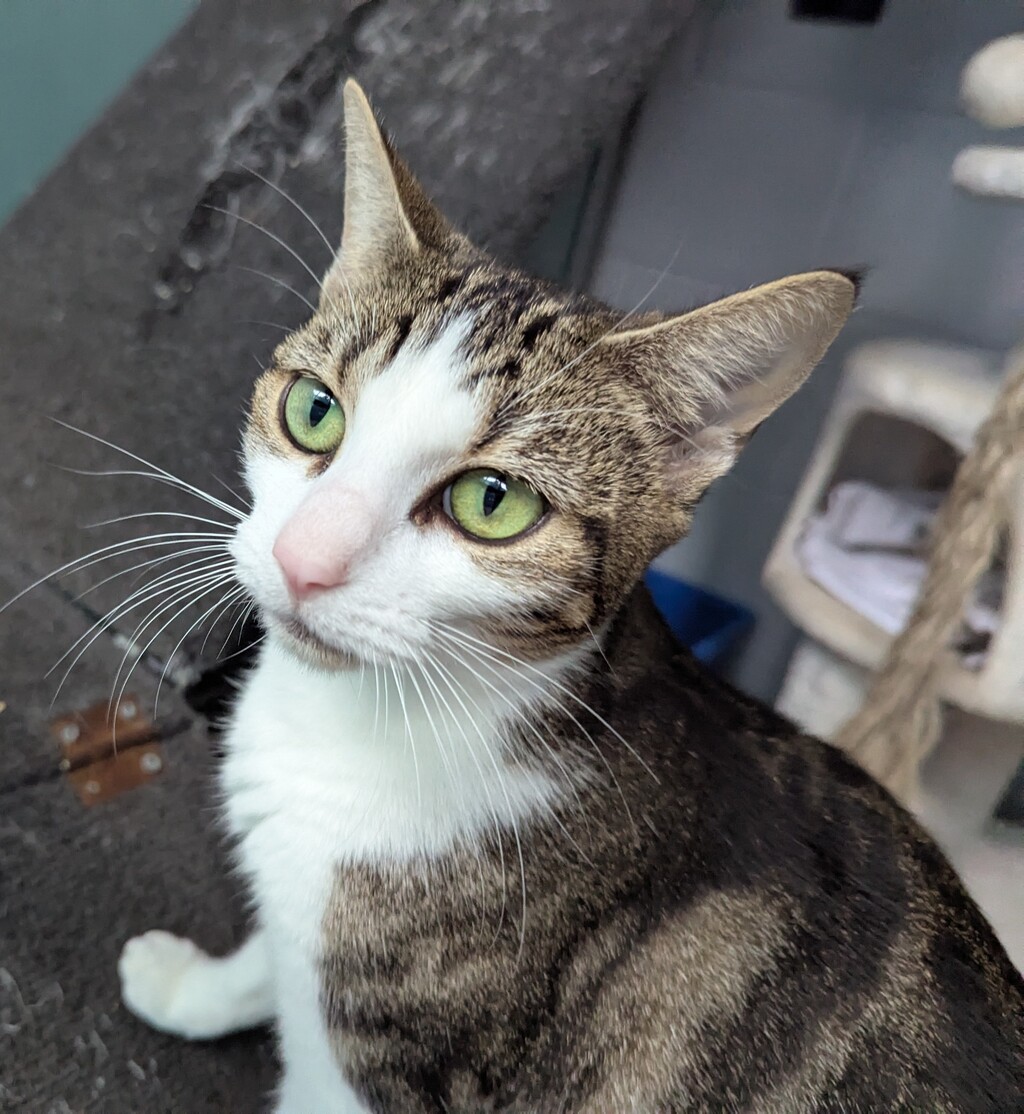 Meet Toffee - as sweet and delightful as her name! This gentle, affectionate girl adores human company and isn't shy about striking up a conversation. Whether she's sharing her thoughts with a soft meow or waiting eagerly for dinnertime, Toffee's friendly nature and beautiful eyes are sure to melt your heart. She's the perfect companion for anyone looking for a loving, easygoing feline friend.