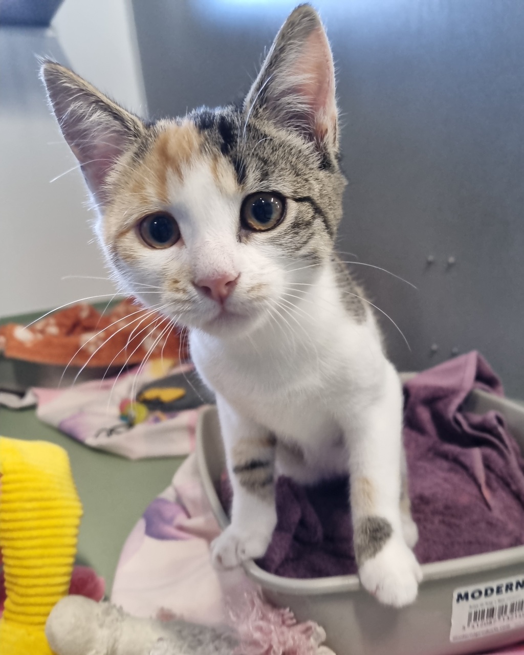Say hello to Isla, a fierce little firecracker with a huge personality and an even bigger sense of fun! This wild child is bursting with energy, always on the move, and ready to turn anything-even a bottle cap-into her next great toy. With a serious case of only kitten syndrome, Isla is confident, playful, and sometimes a bit extra when it comes to expressing her excitement.