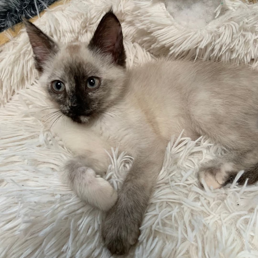 We would love to see Ariel go to a home where someone is around a lot of the time. She's very affectionate and loves being around her human friends, although hasn't met kids yet. She's always looking for cuddles and gives adorable little kisses! She also likes to play hard, chasing toy balls with her friends. Ariel is fully litter trained. She has not been around children.