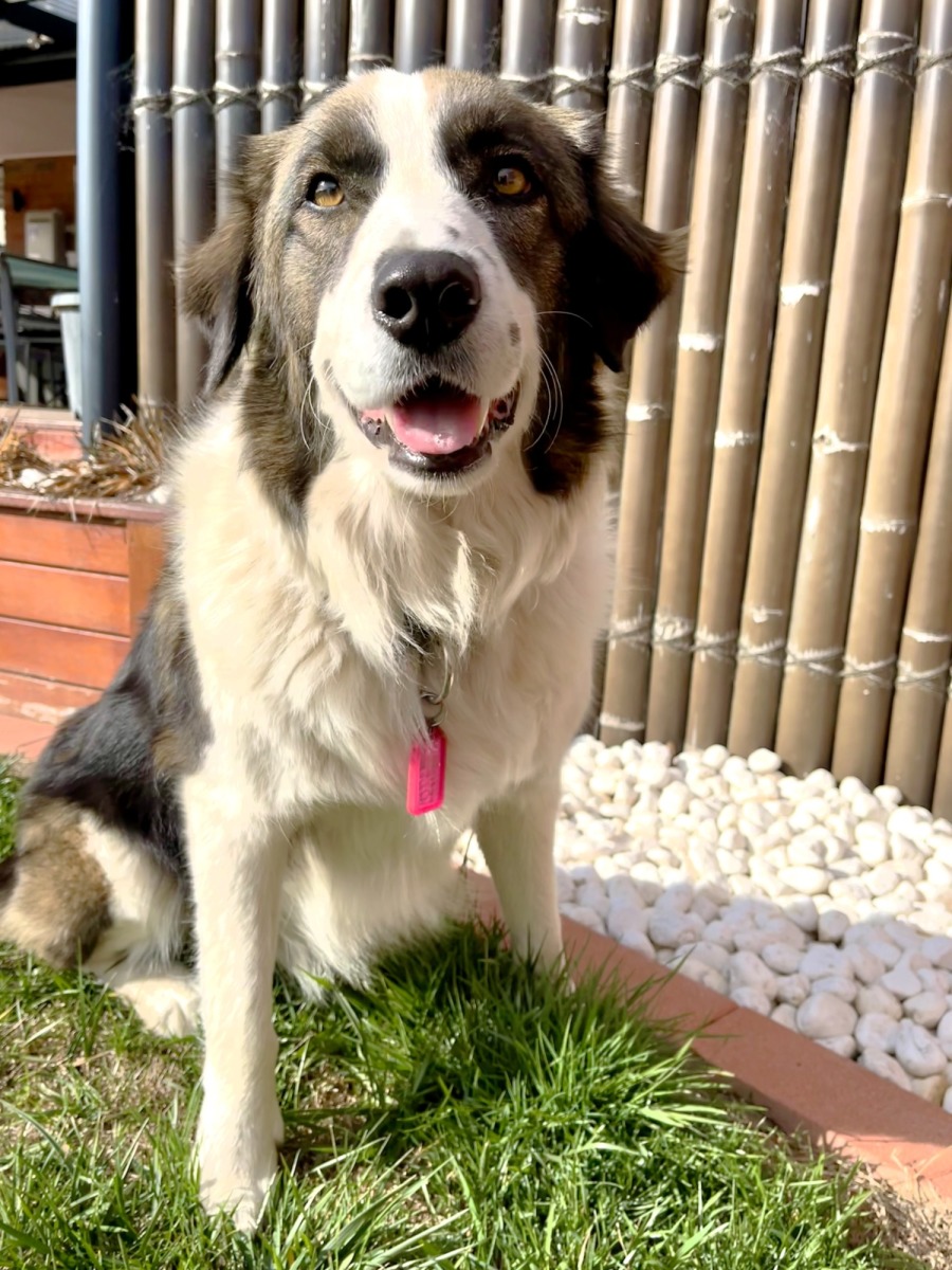 Hi my name is Pesto, I’m a 3 year old male tri-coloured Border Collie x Sarplaninac. I am a friendly guy who is always ready to greet you with a smile for pats, and have been known to rest my eyes during belly rubs.