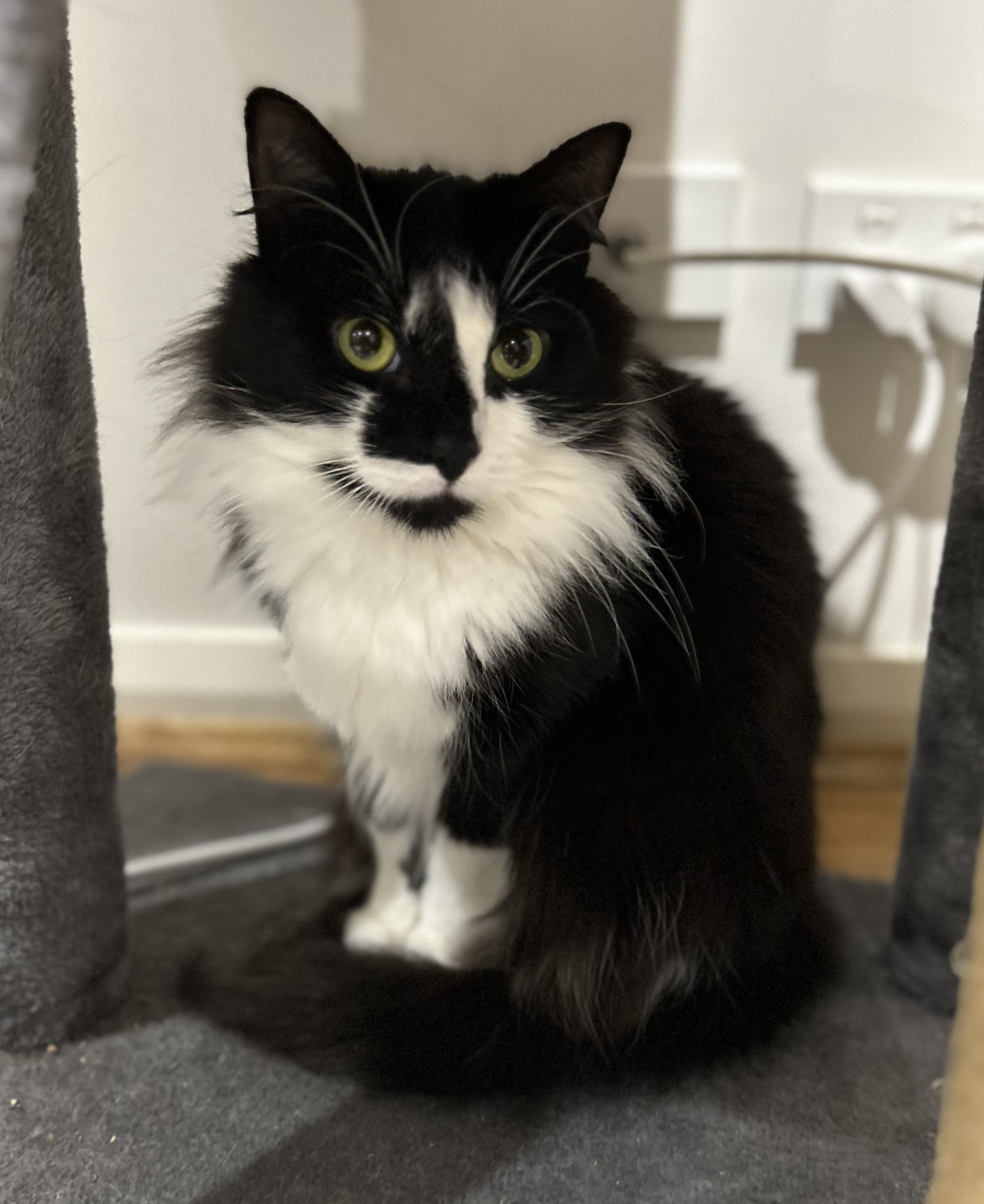 Harvey's journey starts with patience. He appreciates quiet spaces, a predictable routine, and a gentle approach to help him feel safe. Once he knows you're on his side, you'll get the full Dent experience: chatty conversations, evening cuddles (he's got a strict 10pm snuggle policy), purrs, biscuit-making, and playful antics. Because of his nature, he will need a household with cat-savvy teenagers and adults only.
