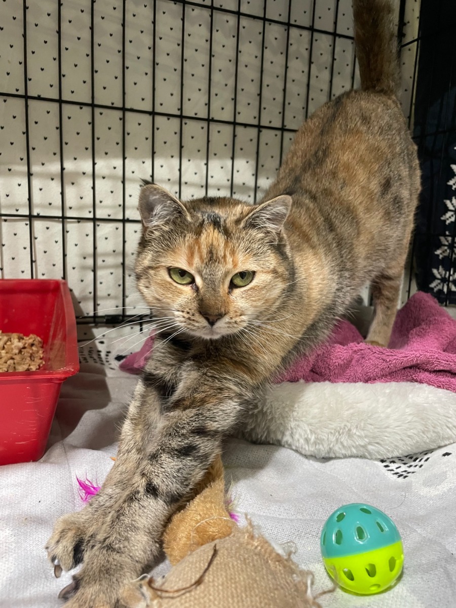 I am a pretty little lady who is very affectionate and smoochy. I arrived at the shelter with my kittens and now they are all grown up, I want to start a new life where I can get all the love and be spoilt.