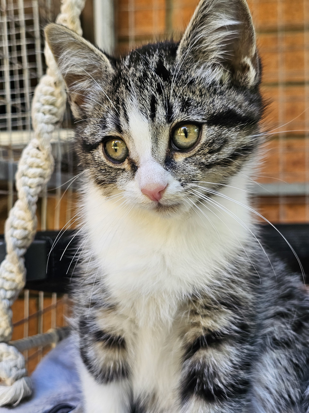 This adorable 9-week-old tabby and white kitten has had a rough start, found with his two siblings abandoned in a box. But despite his beginnings, Basil is nothing short of pure love!