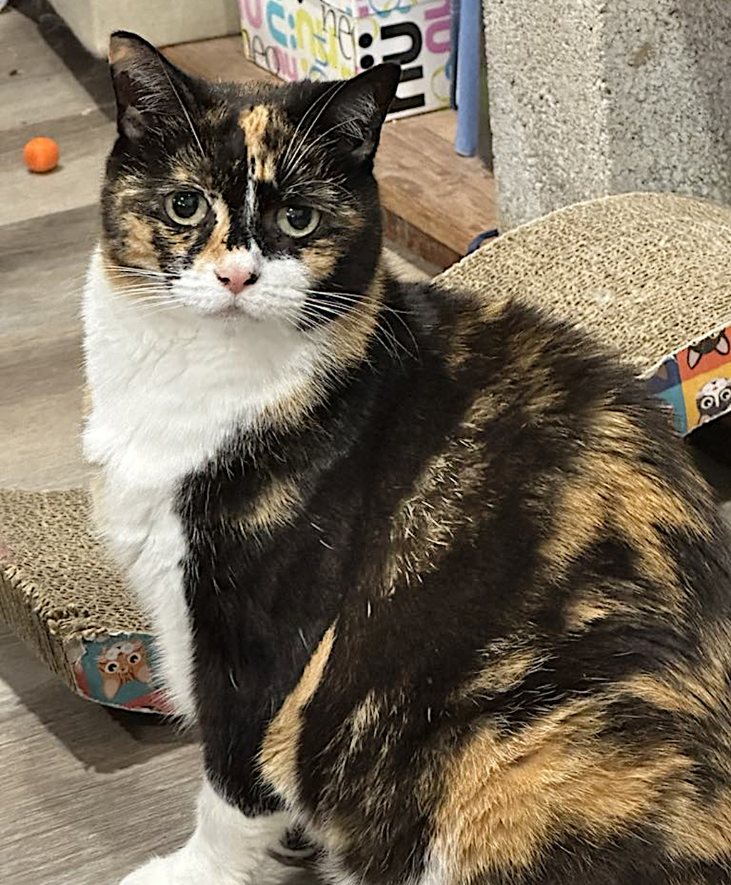 Missy is a sweet mature age lady who is independent and likes to come to you on her terms. Preferring a quiet environment, Missy is always happy for a pat and a chin scratch but is not a lap cat. After an injury as a kitten, Missy has developed an endearing head tilt that makes her unique in her own special way.