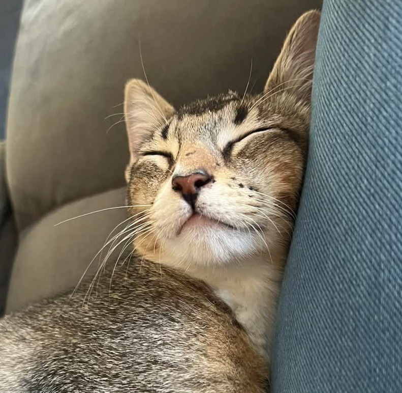 Sleekz is a marvellous cuddle bug who absolutely loves being held. He is happy, playful, and can be a chatty soul. He loves his foster siblings, and is great with the other cats. He's very handsome and will make a fabulous friend to his new family.
