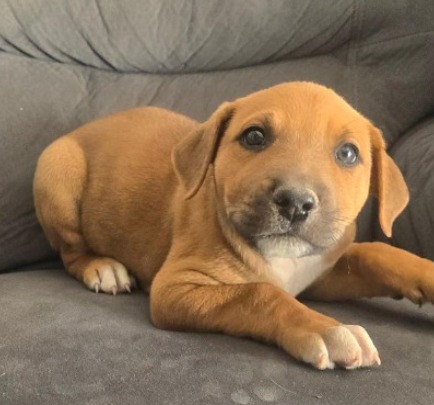 Skedaddle might sound like a name for a speedy pup, but this boy is all about the naps! He’s a gentle soul who adores nothing more than curling up next to someone and snoozing the day away. Honestly, he'll nap anywhere – lap, bed, floor, you name it.