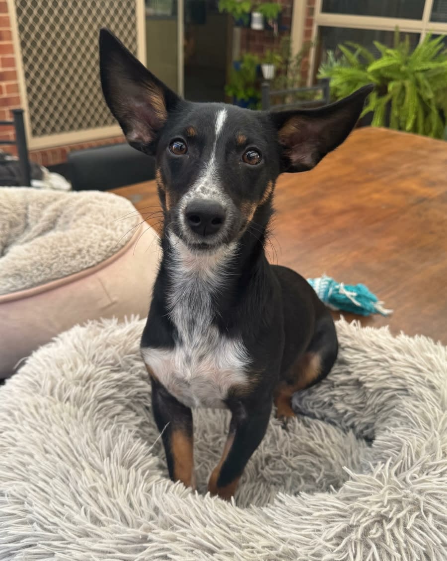 Tammy was not happy about being put to bed in the laundry on her first night with her foster family. She spent the next few nights sleeping in our own bed where she would curl up and sleep the whole night without a sound or even movement. Tammy has now been sleeping outside and has been doing great!