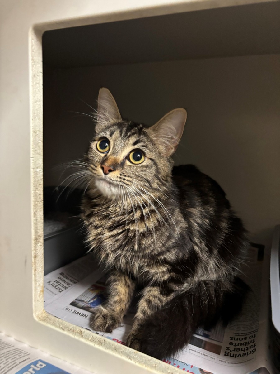 Meet Belladonna, a strikingly beautiful tabby with mesmerizing eyes and a heart full of love—for people! Belladonna adores head scratches, sunny windows, and quiet cuddle time. She’s confident and knows what she likes, which includes being your one and only. This beauty thrives as a solo cat so her purrrfect home would be one with no other cats.