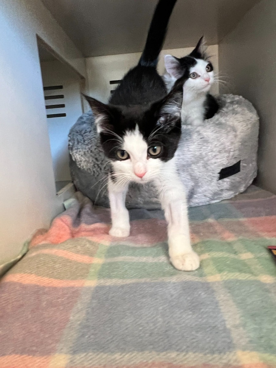 This adorable black and white boy is as sweet as his name. Cookies and Cream is a gentle, loving kitten who’s always ready for a snuggle—especially if it’s with his favourite cuddle buddy, his sister Raspberry Ripple! He’s playful, affectionate, and would love a forever home where he can enjoy cosy naps and gentle head rubs.
