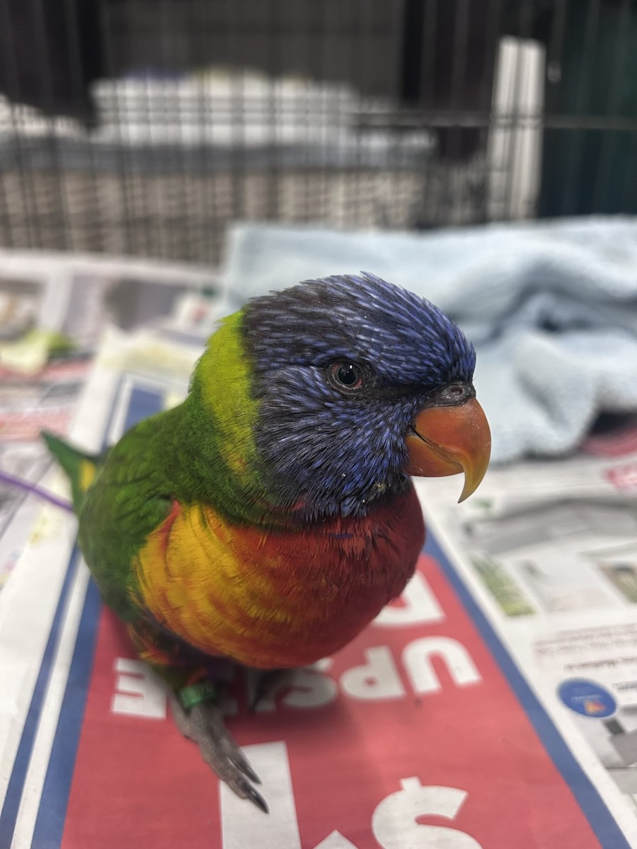 Aubrey would do best in a home with experience in parrot care or someone committed to learning about lorikeets. They need plenty of enrichment and a diet tailored to their species (they're not a seed eater— nectar and fruit are key!). A household where they can be a part of daily life, with lots of attention, stimulation, and opportunities to bathe and play, would make them happiest.
