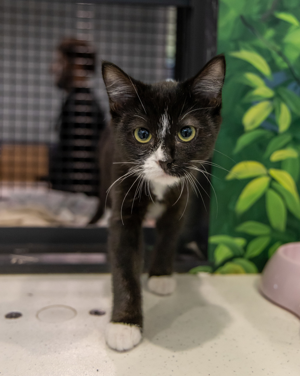 Hi, I'm Pepperoni. I am looking for a kind and patient person or family to show me that humans are amazing. When I was younger, I didn't see too many people so I am still learning that humans are the providers of my delicious snacks! Once I get to know you, my shyness will turn into trust, and I'll be right there beside you, ready to share soft purrs and quiet moments. So, if you're looking for a gentle and quiet furry friend, please consider adopting me!