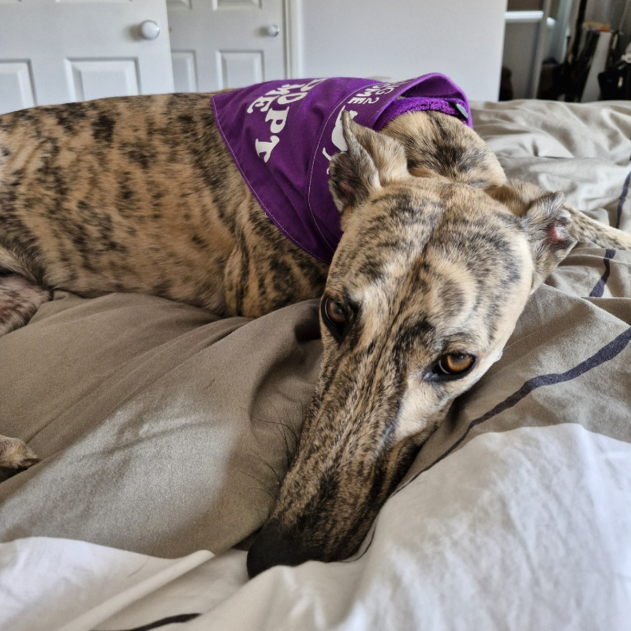 Totie adores fluffy toys that squeak, entertaining herself by pulling out her favourites to show anyone who is home. It it important to Totie that the humans acknowledge the toy being presented, and accept that she will bring many, many toys for you to admire. You'll know once the toy basket is empty, because she will bring that to show you too! She delights in backyard zoomies, and plays tug-of-war with her whippet foster brother - making a game of Totie dragging him around the lounge on his bed - he loves it!