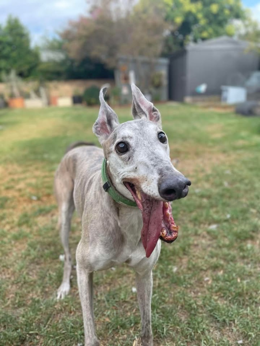 🐾 Meet Yankee – 8 yrs old, The Cuddle-Loving, Quirky Greyhound Looking for His Forever Home! 🏡💙