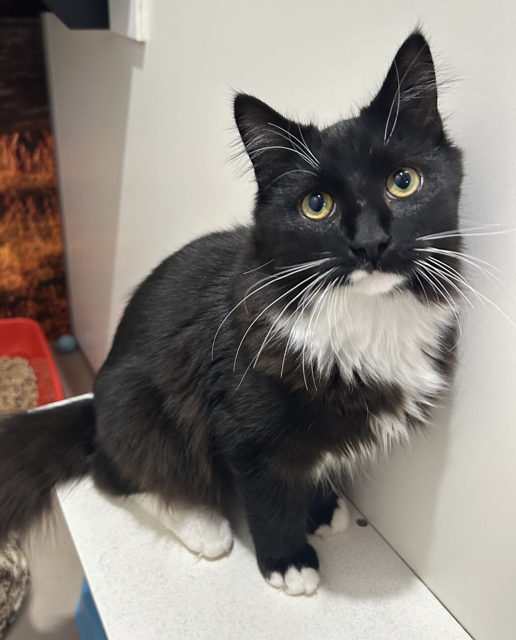 I am the handsome Cal; I am looking for a forever home that can include me in the day-to-day activities. I would love to have an indoor lifestyle, as the outside world is not for me. I am a super smooch and loved to be center of attention! I would love some toys and a scratchy tower to sleep on. I am a very quiet and sweet fellow, who just wants to give smooches. I would love to curl up on the couch with you and spend the rest of days with you. I would make the purrrfect addition to any family!