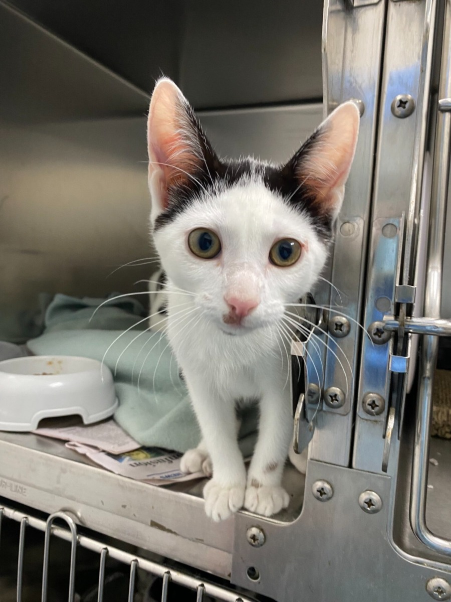 Toupee is a sweet and gentle little lady with a heart as soft as her fur. She’s calm, affectionate, and loves being held close or gently petted while she purrs contentedly. But what really makes Toupee stand out is her hilarious hairdo—her her little black patch makes her look like she’s wearing a tiny wig! This quirky feature only adds to her charm. Toupee would thrive in a loving, relaxed home where she can be the adorable, silly sidekick you never knew you needed.