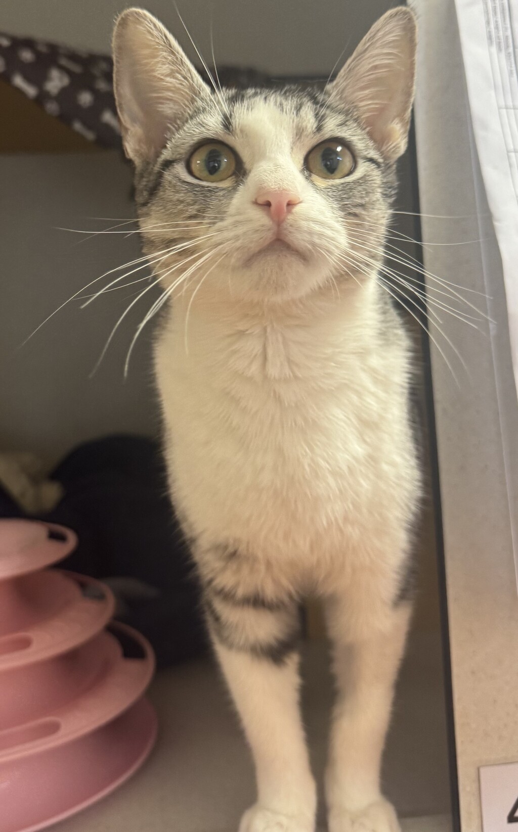 I'm Rainbow and a delightful little 8 month old kitty who got herself into somewhat of a situation which has left me with three legs, instead of the usual four! Now, for the faint-hearted this might prove a problem, but for me, I've accepted the situation and making the most of it. There's no stopping this gal although I may take a little while to adjust to the tripod setup and of course cleaning (such an important part of a cat's grooming process) may need some creative license on my part. Anyhow, as you may know, lcats can be a hoot, especially young ones like me: not only so much fun with our antics but also because we're very eager to please you! What a combo in a cat! So, what are you waiting for. I'm here at the RSPCA waiting for you, my new family!