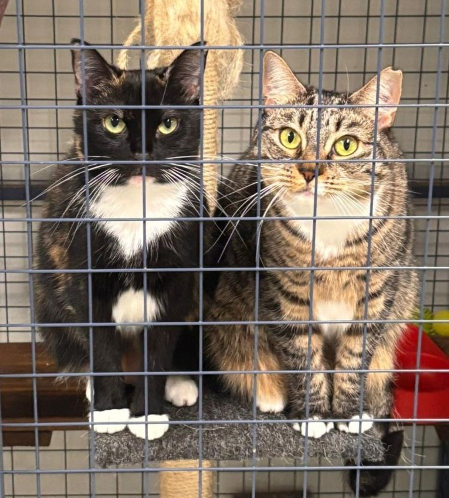 Prue has delicate tabby stripes and a white bib, and Trude is a sleek, dark tortoiseshell with white markings. They may not be the first to approach strangers—but once food is involved, their curiosity helps to overcome their caution.