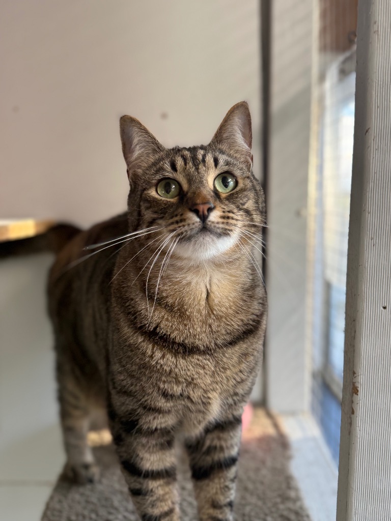 Storm may sound like a wild name, but this sweet boy is all sunshine. With his soft tabby stripes and calm, soulful eyes, Storm is the perfect mix of laid back and affectionate. He loves to lounge in sunny spots, watch the world from a cozy windowsill and curl up next to his favorite human for a good nap. At 4 years old, Storm is past the kitten chaos but still full of playful curiosity. He enjoys gentle playtime, head scratches, and being told what a handsome boy he is (he knows, but he loves hearing it anyway!) Storm is untested around other cats, dogs and kids. Come and meet him at our Longford Centre.