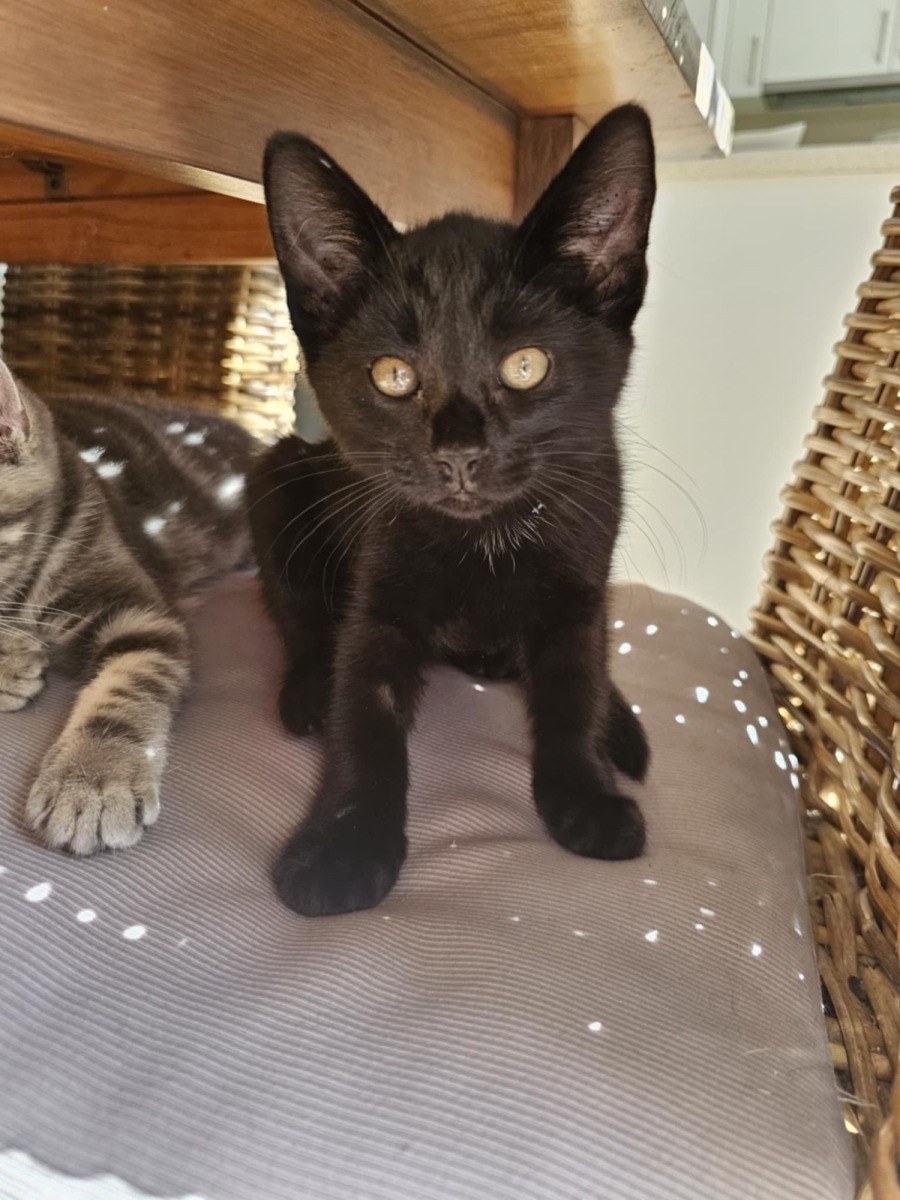 Wagga is a gorgeous little black panther with a silky-smooth coat and the sweetest heart. This beautiful boy is all about affection, he adores lap time, snuggles in close, and purrs like a tiny engine the moment you touch him. He’ll greet you with headbutts and happily curl up in your lap for a nap.