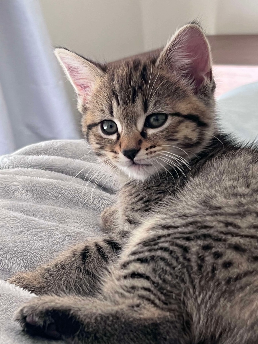 Navia is a sweet little tabby girl whoâs playful, friendly, and full of purrs! Sheâs everything you could want in a kittenâadorable, cuddly, curious, and always ready for fun.