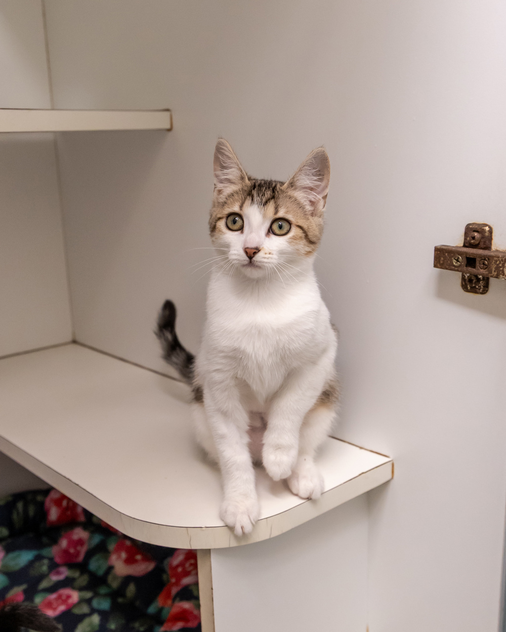 Hey there, I'm Petal. I'm a friendly and affectionate kitten who would suit most homes! My playful paws are always ready to pounce on anything that moves. I love playing with wand toys and mysterious shadows on the wall! When I'm finished playing, I love nothing more than finding a warm lap to curl up in.