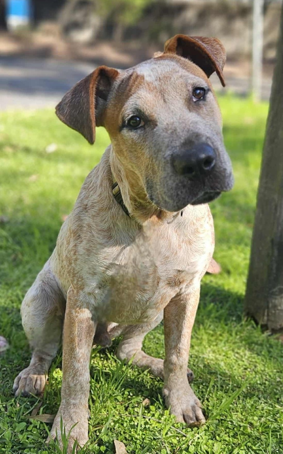 He's typical cattle dog size, with a bit of a boof head from the bulldog side.