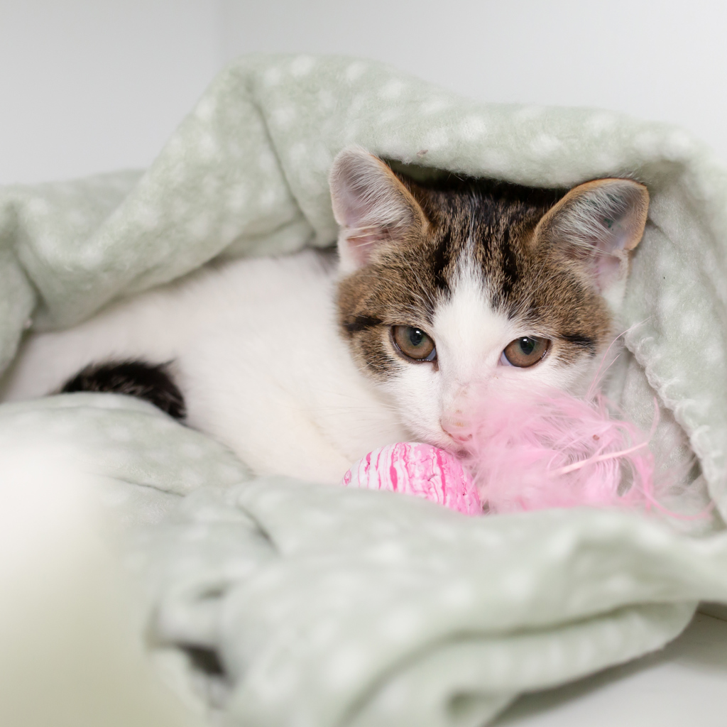 Chilli is a charming tabby and white kitten who's bursting with personality. With her soft fur, bright eyes, and playful energy, she's sure to steal your heart in no time. Don't let her name fool you - this little girl is all warmth, snuggles, and gentle purrs.