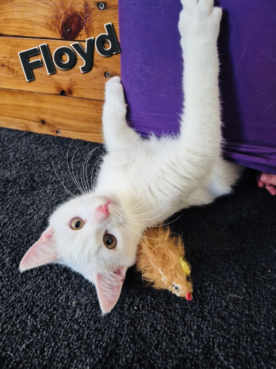 Wise beyond his whiskers and soft as a cloud, Floyd is the perfect mix of calm charm and playful energy. Though he’s still just a baby, Floyd has the serene, observant vibe of a wise old soul — the kind of kitten who seems like he’s seen it all and decided to take life one gentle purr at a time.
