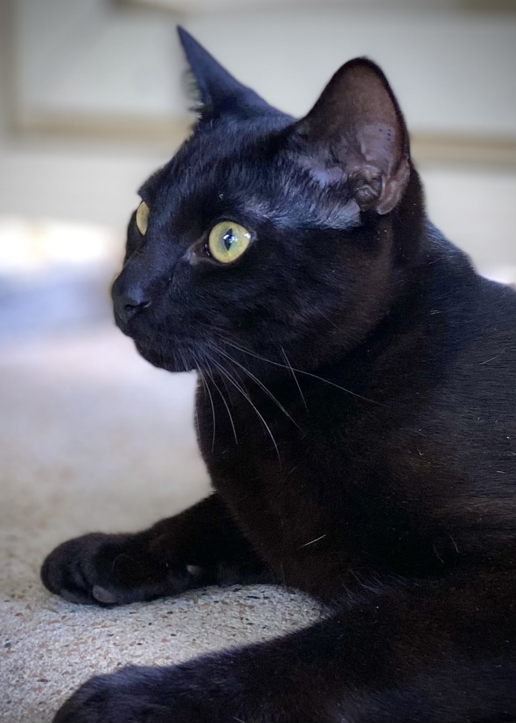 How would you like to have your own 'house panther'? One that purrs, rolls over, jumps in your lap and is very switched on to his human? That's Salem. His jet black coat is smooth and shiny which goes nicely with his long, sleek body. He's very healthy and he'll be your buddy for many, many years. Salem hasn't reached his adult years as yet which means:- his current weight of 4.1 kgs will definitely increase to a big boy size. Next, he's a young male cat who is very playful and energetic and he may engage in rough play. Suggestions for his care:-