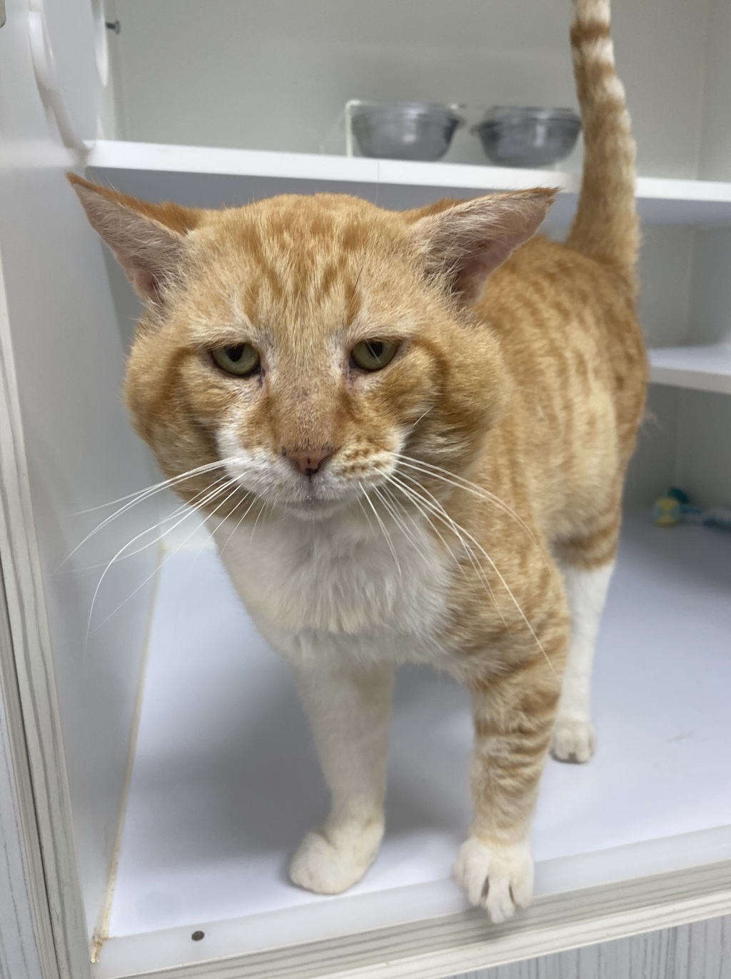 This sweet, mellow fellow is a ginger tabby who loves to show his affection by kneading and drooling.