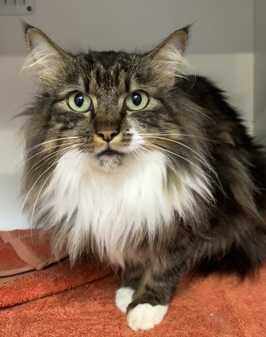 Meet Owl, a feline companion whose name reflects her captivating, round eyes. She possesses a serene demeanor, her nature being as gentle as a soft breeze. Owl's shyness is endearing, making her a perfect match for a calm, quiet home. Her long mane is a sight to behold, enhancing her overall charm. Owl's sweetness is undeniable, and she has a knack for making anyone's heart melt with her affectionate purrs. If you're looking for a loyal, loving friend who'll add a soothing presence to your life, Owl is the one. Her shy, gentle personality makes her a perfect addition to any family seeking a calm and loving pet.