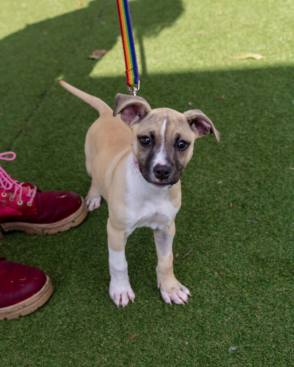 Lottie is still learning the ropes of walking on lead but is eager to please and always ready for the next adventure. She's very food-motivated (especially if chicken is involved!) and loves getting involved in whatever her humans are doing-whether it's chores or playtime, she'll be your shadow.