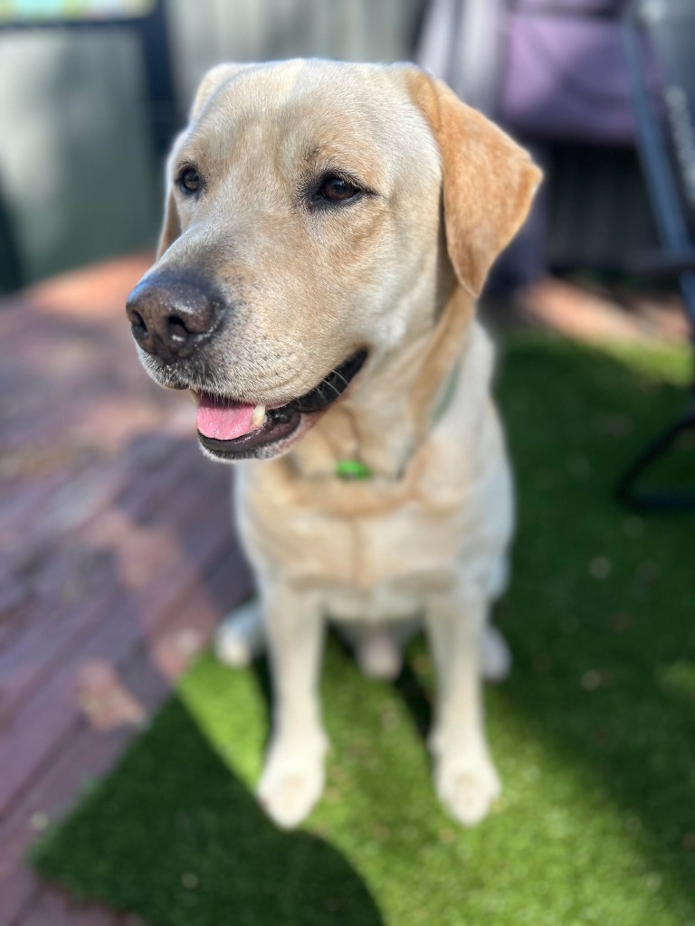 This is Sunny! A 5 year old male desexed Labrador. Sunny is a gentle boy, that loves his walks and loves to jump in the pool! He walks good on a lead, but is still a little unsure when it comes to facing off with another dog coming in his direction. He doesn’t seem to mind our cat, and certainly doesn’t pay attention to the birds or small farm animals. He just loves attention, but does have a small amount of anxiety when away from his humans…this is improving though!!
