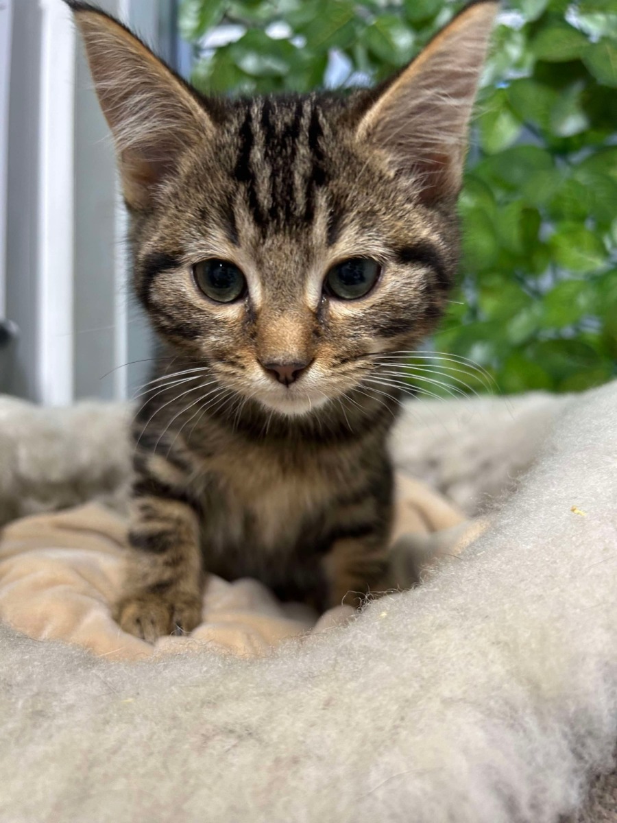 Halo is an energetic and friendly female kitten who’s looking for a home where she can play, explore, and get plenty of attention. She’s outgoing and curious, always eager to check out her surroundings and find something new to investigate.