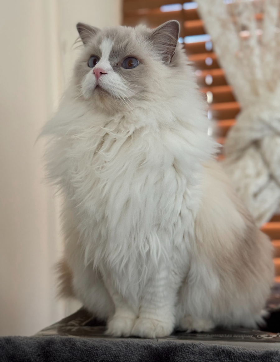 Meet Shilo, a regal Ragdoll with charm and character that will enchant you at first sight. Shilo delights in engaging conversations, sharing her opinions with a delightful repertoire of chatty meows. She thrives on communication and will happily engage in playful banter. With her dignified presence, this queenly feline would flourish as the sole ruler of her domain, enjoying the tranquility and attention that being the center of a loving household brings.