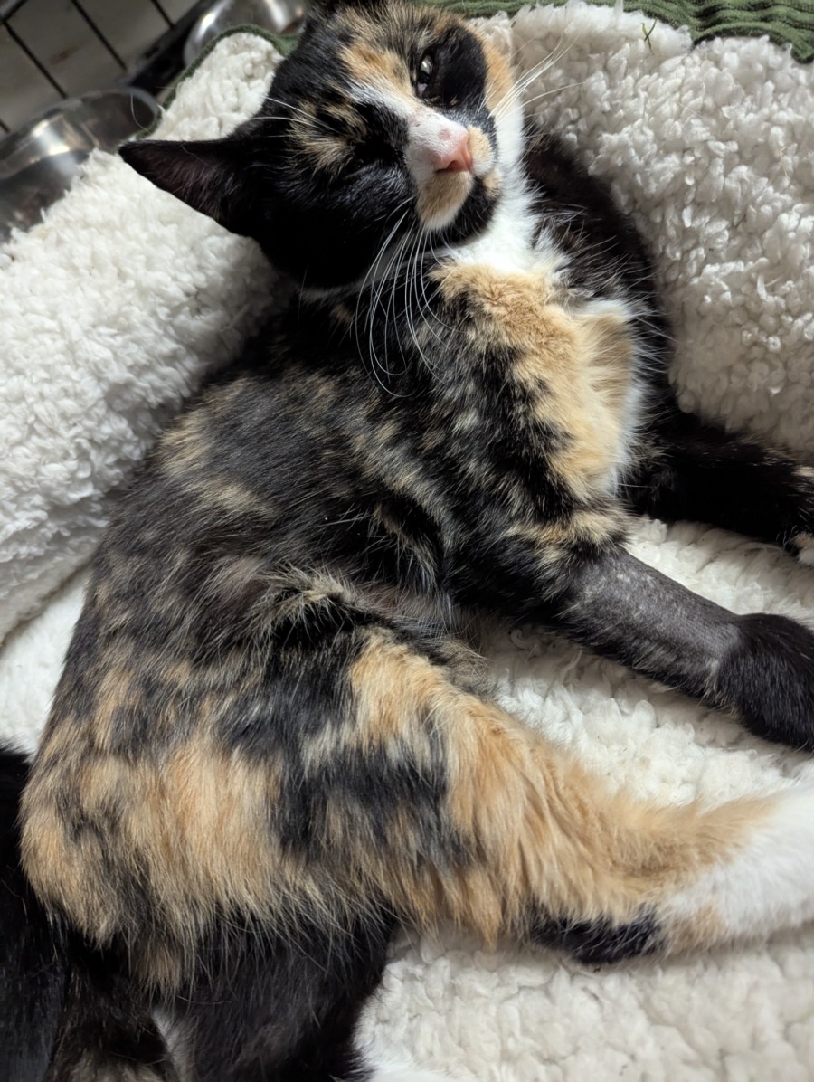 Mertle came into care with her sister and an older kitten. They have both been adopted and now Mertle is sharing with a 8 week old kitten.