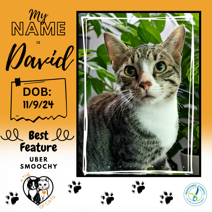 You can’t go wrong with David. He is the smoochiest cat out there. He loves you, and you, and you, and you and you.