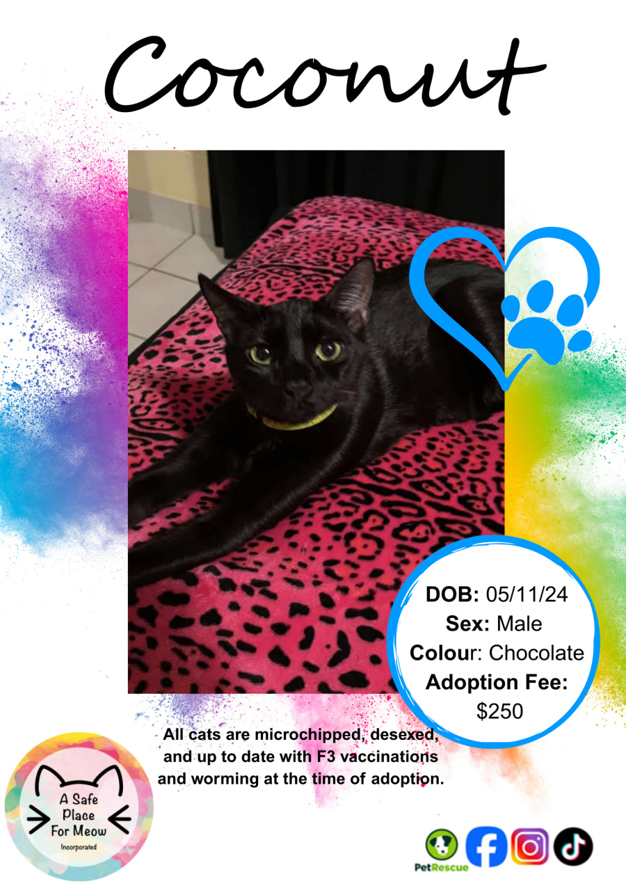 If you're looking for a loyal, low-fuss kitten with a touch of charm and a whole lot of heart, Coconut might just be the one for you.